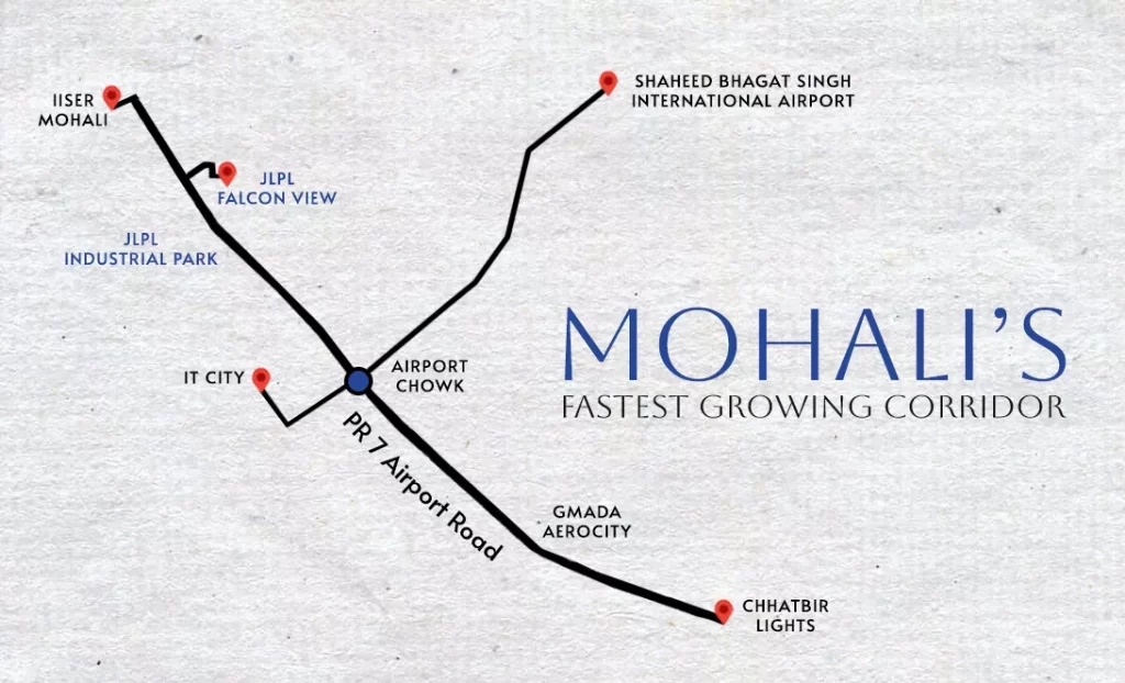 One of the fastest growing corridors in Mohali is the stretch along the PR-7 Airport Road and its adjoining sectors including – Sector 66/A, Aerocity and IT City. This corridor